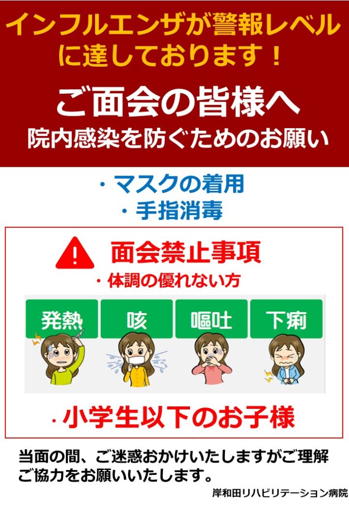 入院患者さまへの院内感染を防止するため、本日より面会制限を行います。